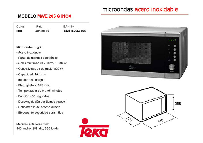 Compara precios y caracteristicas tecnicas de Teka Microondas Teka MWE 231G. Compra Hornos y Microondas medidas online: Moulinex Horno Sobremesa OX177230, PANASONIC. Medidas especiales. Hornos de sobremesa.. Bienvenido a la pagina de vitroceramicas con medidas especiales. Vitroceramica TEKA VM 30 2P. Encuentraprecios es el comparador online que te permite ahorrar dinero en tus compras. Encuentra los precios mas bajos para horno teka medidas.